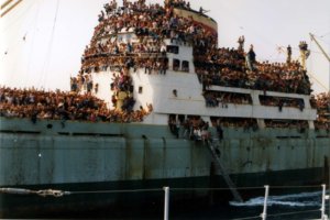 1991. augusztus 7-én a kubai útjáról visszatérő Vlora kikötött Durres partjainál ahol a hibás üzemen kívüli motort javították, eközben egyre duzzadt a tömeg a kikötőben… A várakozást nem tűrő embersereg egyenesen feltódult a fedélzetre, de voltak akik a vízbe ugráltak majd úgy másztak fel köteleken a hajóra. A kapitány Halim Milaqi nem tudta meggyőzni az utolsó szalmaszállba kapaszkodó népeket, így kénytelen volt csak a segédmotorok használatával elindulni Brindisi kikötője felé. Az olasz kikötővároshoz hajnali 4 óra körül érkeztek meg, ám az ottani hatóságok megtiltották a hajónak a kikötést. A kapitány ekkor a 88- km-rel odébbi Bari felé vette az irányt…